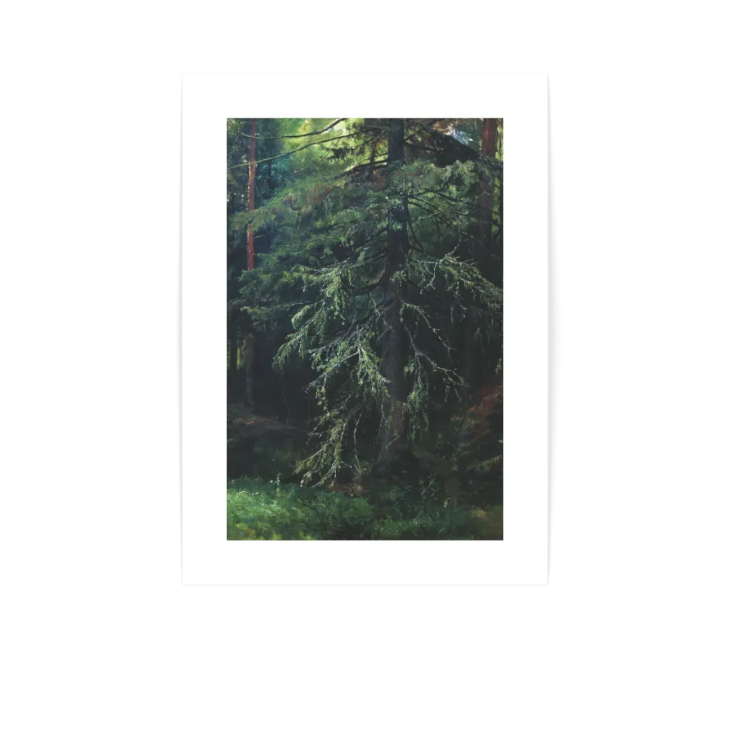 Ivan Ivanovich Shishkin, a master of Russian landscape painting, captures the majestic calm and grandeur of nature in his work "Spruce". The spruce, a symbol of permanence and strength, is depicted with a level of detail that is almost photographic. Shishkin, known for his love of Russian flora, manages to depict the texture of the needles and the structure of the branches so vividly that one almost feels like one can smell the scent of the forest. His works are a tribute to the pristine nature of Russia and invite the viewer to immerse themselves in a world of silence and contemplation.