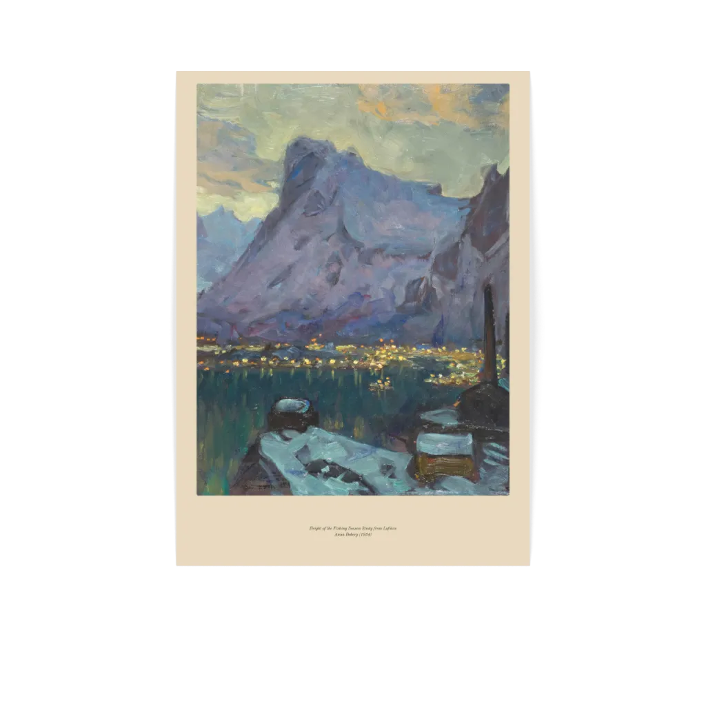 Fun fact: Anna Boberg was not only a painter, but also a talented designer and writer. She was known for her designs of sets and costumes for the Royal Dramatic Theatre in Stockholm. She was also a passionate traveler and spent a lot of time in Lofoten, where she was inspired by the dramatic landscape. A lesser-known fact is that she often lived in a converted fishing boat, which she used as a floating studio to capture the changing light and moods of the islands.