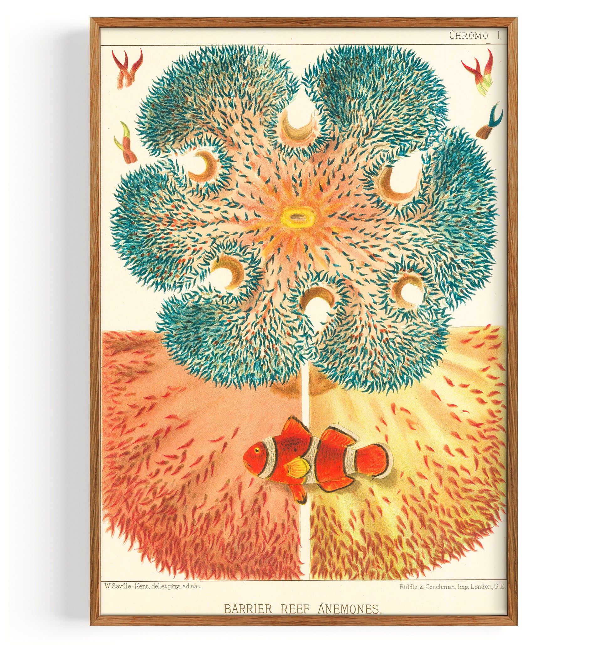 William Saville Kent, a pioneer of marine biology, created a fascinating work on the echinoderms of the Great Barrier Reef in 1893. In his book "The Great Barrier Reef of Australia" he combined scientific precision with artistic representation to show the diversity and beauty of these sea creatures. The illustrations are not only a testament to his scientific expertise, but also to his artistic talent. The detailed depictions of the starfish, sea urchins and sea cucumbers capture the vibrant colors and complex structures of these animals and bring them to life for the viewer.